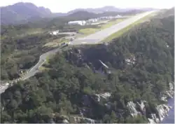 By then, the aircraft had insufficient speed to abort the landing. Aware that the aircraft most likely would overrun, the commander opted to not steer it off the left where there was a steep descent, or to the right where there were rocks. As a last resort, the commander attempted to reduce speed by skidding the aircraft by first steering it right, and then abruptly to the left.[13] The aircraft overran the runway at 22.8 seconds after touchdown, at 07:32:37. At the same time, the crash alarm was activated by AFIS.[12] The aircraft slid off the runway at about a 45-degree angle, roughly north-west.[14]