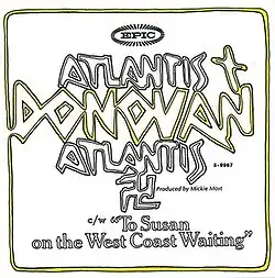 "Atlantis" is a song written and performed by Scottish singer-songwriter Donovan. Produced by Mickie Most for Donovan's seventh studio album Barabajagal (1969), the song tells of the mythological antediluvian civilization of Atlantis. Donovan states in his 2005 autobiography The Hurdy Gurdy Man that the song was originally inspired by his reading the 1886 occult novel A Dweller on Two Planets, along with similar legends of early civilizations found in Irish legends of the Tuatha Dé Danann and the Vedas of ancient India.[3] However, the description of Atlantis in the song's lyrics draws quite heavily on Ignatius L. Donnelly's 1882 book, Atlantis: The Antediluvian World.[4][5]