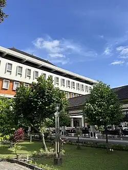 Atma Jaya University Yogyakarta (Indonesian: Universitas Atma Jaya Yogyakarta) (Javanese: ꦈꦤꦶꦮ꦳ꦼꦂꦱꦶꦠꦱ꧀ꦄꦠ꧀ꦩꦗꦪꦔꦪꦺꦴꦒꦾꦏꦂꦠ, romanized: Univêrsitas Atma Jaya Ngayogyakarta), abbreviated as UAJY, is a university located in Depok, Sleman Regency, Special Region of Yogyakarta, Indonesia. UAJY is one of the 50 most promising university and one of the best six universities in Indonesia in quality assurance according to Directorate of Higher Education, Department of National Education. Currently the university offers 12 undergraduate and 7 graduate programs, with an estimated ±11.307 students. There are four main campus buildings: Alfonsus Building in Mrican, Thomas Aquinas Building in Babarsari, Bonaventura Building in Babarsari, Teresa Building in Babarsari.
