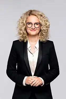 Aušrinė Armonaitė (born 26 May 1989) is a Lithuanian politician who served as the chairperson of the Freedom Party from 2019 to 2024.[1] Previously a member of the Liberal Movement and a vice chairperson from 2017 until 2018, Armonaitė was first elected to the Seimas in the 2016 parliamentary election. In 2018, she resigned from the Liberal Movement and later joined the social liberal and progressive Freedom Party. She led the party into the 2020 parliamentary election, where the party won 11 seats and became represented in the Seimas for the first time.