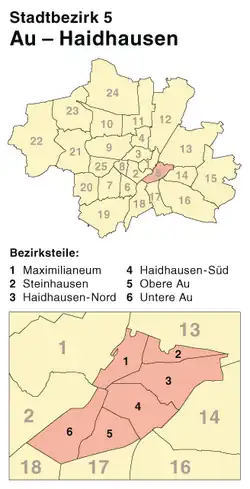 Au-Haidhausen (German pronunciation: [ˈaʊ haɪtˈhaʊzn̩]; Central Bavarian: Au-Haidhausn) is the 5th borough of the German city of Munich, Bavaria. It is formed by the Au and Haidhausen districts.