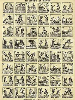 The auca began as a card game played for money. The cards were possibly also used for divination, judging by the images that initially appeared on them: the Moon, the Sun, stars and animals, among them a goose, which gave its name to the game. (Auca means "goose" in the north-western dialects of Catalan; it is oca in modern standard Catalan.) The earliest preserved auca was created by Pere Abadal in 1670 in Moià. The game was forbidden throughout the 17th and 18th centuries and gradually the auca developed into an art form in which all the images appeared on one page and had a unifying theme, initially - arts, crafts, children's games and animals.
