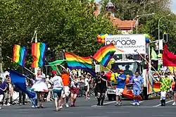 The Auckland Pride Festival is an annual festival held in Auckland, New Zealand. It began in 2013 and is New Zealand's largest Pride Festival.[1][2] The festival has also brings together a number of other queer and queer supporting festivals and events in Auckland. They include the Same But Different Festival, Proud Centres run by Auckland Council,[3] Ending HIV NZ Big Gay Out, F.I.N.E Festival, Heroic Gardens (until 2019[4]), and Bear Week New Zealand (until 2019). Alongside the annual festival, Auckland Pride also hosts 'The Queer Agenda', a year-long programme of events that allow people to have a taste of pride outside of the festival dates.[5]