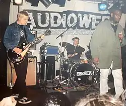 Audioweb scored two Top 40 hits in the UK Singles Chart - "Policeman Skank...(The Story Of My Life)", and a cover version of The Clash's "Bankrobber".[3] Famous admirers of the group were U2 and Ian Brown. Audioweb supported U2 at Wembley Stadium in August 1997. Prior to this Stadium gig they supported Cast at Glasgow's Barrowlands in March 1997. They also supported Madness at Madstock '96 at Finsbury Park, London. Audioweb released their material on the Mother Records label.[3]