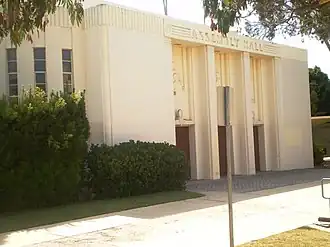 When built in 1924 the building was a source of pride for Torrance, and was its first large meeting hall, preceding construction of a civic center.[2] It was damaged in the 1933 Long Beach earthquake and was rebuilt as a New Deal project.[3]