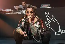 Audry Bustos Díaz, known as Audry Funk (Puebla, October 25, 1987), is an artivist, philosopher, writer and singer, especially popular for her feminist rap.[1] Funk was born in Mexico, and migrated to New York. She lives in Bronx, which is one of the topics of her art.[2][3] Alongside the Guatemalan MC Rebeca Lane, Funk was one of the leaders of Somos Mujeres Somos Hip Hop, merely translated as "We are Women We are Hip Hop."[4] Funk is internationally recognized in the independent music scene and within the community of Latin American rappers.[5][6][7][8]