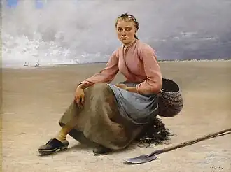 When he began painting in Normandy and Brittany, he discovered some of the motifs that would come to dominate his work, such as beaches, fishermen and their families. "Low Tide in the English Channel" was exhibited at the Salon in 1879 and was purchased by the Luxembourg Museum. The publicity from that sale ensured his career.[2] He became part of a circle of Swedish painters that included Prince Eugen, a gifted amateur artist.
