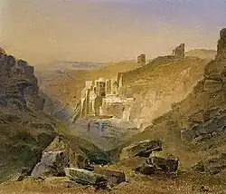 In 1853 he accompanied Ludwig Thiersch to Greece and made a number of studies, executing a large painting, Delphi, upon his return. In 1856 he traveled to Venice and Milan to study the Old Masters. In 1857 he painted Jerusalem, Bethlehem, Jafa, Saba, Damascus, and the Red Sea for the king of Württemberg, and drew the cartoons Die Findung Moses' and Gott erscheint dem Elias auf dem Berg Horeb. In 1863 he painted views of Athens from Kolonos and Jerusalem from the Mount of Olives, as well as four large murals — of Memphis, Jerusalem, Athens, and Rome — for the society halls in Kochel. He died in 1866 in Munich.