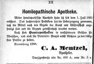 - ^ Allgemeiner Wohnungs-Anzeiger fur Bromberg 1855. Bromberg: Verlag von M. Aronsohn's Buchhandlung. p. 21.