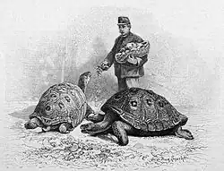 Galápagos tortoises in Hamburg Zoo - Illustration for "Die Gartenlaube"