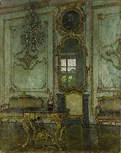 In 1909, he succeeded Alexander Frenz at the Faculty of Architecture of the RWTH Aachen as a full "professor of figure and landscape painting", and became dean in 1929.[1] In Aachen Brandis had his most successful and creative years. In Kaldenkirchen his parents-in-law had a house with a large garden, August von Brandis spent many time in the Rokoko pavilion.