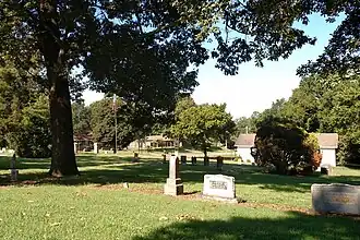 Augusta Memorial Park is a cemetery in Augusta, Arkansas. It is located in the northeastern part of the city, accessible via Arkansas Highway 33B. The cemetery was established in 1852, on what is reported by local historians to be a Native American burial mound. The cemetery dates to the earliest period of the city's history, and is where many of its first settlers are buried. The cemetery is roughly L-shaped, with the oldest, northwestern portion at the corner of the L. A 5-acre (2.0 ha) section of the cemetery was listed on the National Register of Historic Places in 2003 for its historical associations.[2]