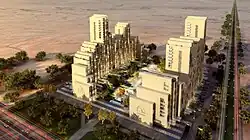 Aura Erbil is one of the major projects in Erbil. It is a 200,000 sq. meter real estate project designed in an artistic manner. The project is located in Shoresh District on the Massif-Salaheddine road in Erbil, Kurdistan which now is considered to be the new city center. Aura Ebril plans to offer a five-star hotel building, 269 luxury flats, 40,000 square metres of shopping, movie theaters, greenery, landscaped circulation, cutting-edge blocks of offices, and a central entertainment mall having ground-floor retail outlets.[1][2]
