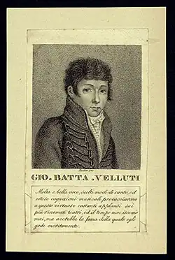 Aureliano in Palmira was Rossini's second commission from La Scala. It opened the theatre's Carnival season with the famed castrato, Giovanni Battista Velluti as Arsace. It was the only role that Rossini wrote for the castrato voice. Rossini had originally written the role of Aureliano for Giovanni David, one of the most renowned tenors of the day. However, throat problems during rehearsals led David to withdraw from the production, and Luigi Mari took his place.[6] The popular soprano, Lorenza Correa, sang the role of Queen Zenobia. The orchestra at the premiere was conducted by Alessandro Rolla, with the staging directed by Alessandro Sanquirico.[7]