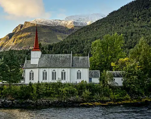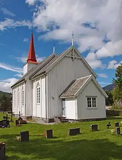 Austefjord Church (Norwegian: Austefjord kyrkje) is a parish church of the Church of Norway in Volda Municipality in Møre og Romsdal county, Norway. It is located in the village of Fyrde, at the eastern end of the Austefjorden. It is the church for the Austefjord parish which is part of the Søre Sunnmøre prosti (deanery) in the Diocese of Møre. The white, wooden church was built in a long church design in 1879 using plans drawn up by an unknown architect. The church seats about 150 people.[1][2]