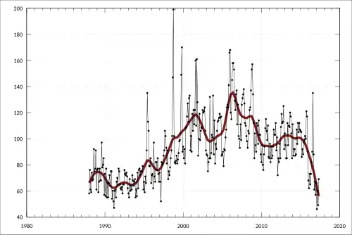 Some 90,000 Australians are resident in Hong Kong.[14] According to the 2016 Census, 86 886 people of Hong Kong origin live in Australia, with 280 943 Cantonese speakers in Australia, the largest number after Mandarin Chinese and Arabic.[15] The majority Hong Kong immigrants live in Sydney and Melbourne.[16]