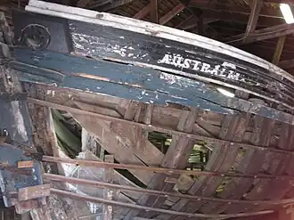 Australia was a coasting schooner located at Mystic Seaport in Mystic, Connecticut, United States. Australia was built in 1862 in Great South Bay, Long Island, New York and was originally named Alma. Australia was designed to carry freight and to be able to traverse shallow water. Australia was used as a Confederate blockade runner during the American Civil War until she was captured by Union warships and sold at auction. Mystic Seaport acquired her in 1951 for use as a training vessel. In 1962 Australia was hauled out for restoration but damage to the hull was deemed too extensive and the vessel was permanently beached. Australia was housed in a shed and used as an exhibit on ship construction, until she was scrapped in the late 2010s. The building is now being used for another purpose.