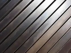 At the rear, the peaceful ambiance of the courtyard is contained by the third element, a single massive black polished masonry Commemorative Beam denoting the strength and stability that results from peacekeeping activities. Bronze facings on the beam are inscribed with the United Nations and other international peacekeeping missions and campaigns in which Australian Peacekeepers have participated. Below the beam is a white concrete inclined plane surface with bronze fixings for placing commemorative wreaths or remembrance flowers.
