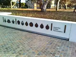 Crests displayed at the front of the Memorial are those of organisations under whose auspices Australian Peacekeepers have operated and at the side, organisations from which they have been drawn.