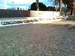 At the rear is a courtyard with words describing peacekeeping, and an area for floral and other tributes.