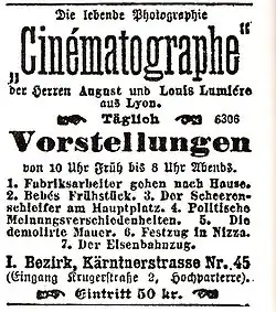 An advertisement for films by the French Brothers Lumière in Vienna from 1896.