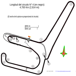 Autódromo Ciudad de Concordia is a motorsports circuit located 4 km (2.5 mi) north of Concordia, Entre Ríos, Argentina.[1] The circuit also used to host the Formula 3 Sudamericana. The track has 14 corners and it is 4.700 km (2.920 mi) long. The circuit was opened in May 1969. The circuit was closed in 2010, reopened in October 2012, and extended in 2014.[2]