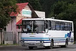 In 1997, as part of efforts to enter foreign markets, the H10-11 suburban model was assembled in Slovakia by Granus (formerly LIAZ Zvolen) in Zvolen.[5] This bus was sold as the Granus H10-11, with modifications to its drivetrain and suspension compared to the Polish counterpart. It was powered by a 6-cylinder, inline, turbocharged Steyr WD 615.50 diesel engine with a displacement of 9,726 cm3, delivering a maximum power of 200 kW (272 hp) at 2,200 rpm, and a peak torque of 1,100 Nm at 1,200– 1,400 rpm.[35] The engine was paired with a 6-speed manual transmission TS6-120. The Granus H10-11 could reach a top speed of 110 km/h. The vehicle was fitted with a LIAZ front axle and a PPS Detva rear drive axle.[35] The production of this model concluded in 2001, with a total of 76 units built: 10 in 1997, 56 in 1998, 6 in 1999, 1 in 2000, and 3 in 2001.[5]