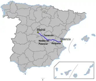 | 5 | Motilla del Palancar | Utiel | 69.23 km | A-3 / E 901 |