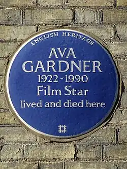 32. ^ "Ava Gardner remembered with London blue plaque". Sky News. Retrieved November 15, 2023.