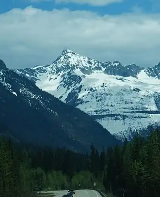 Avalanche Mountain is a 2,861-metre (9,386-foot) summit in Glacier National Park in the Selkirk Mountains in British Columbia, Canada. Its nearest higher peak is Mount Macdonald, 2.2 km (1.4 mi) to the north. Mount Sir Donald is 3.83 km (2.38 mi) to the southeast, and Eagle Peak is 1.46 km (0.91 mi) to the south-southeast.[1] The Avalanche Glacier is situated on the east side of the peak, and the Connaught Tunnel lies partially beneath Avalanche Mountain.[4] The peak is visible from eastbound Highway 1, the Trans-Canada Highway approaching Rogers Pass. During winter and spring of each year the western slope, named Avalanche Crest,[5] generates avalanches which can threaten the highway.[6]