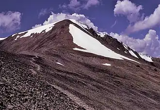 Avalanche Peak is a 10,568-foot (3,221 m) summit located on the shared border of Yellowstone National Park and North Absaroka Wilderness, in Park County, Wyoming.[3] It is part of the Absaroka Range.[4] It features a large bowl covered in scree and is popular with hikers for its view of Yellowstone Lake and the surrounding area.[5] The mountain's name was officially adopted in 1930 by the United States Board on Geographic Names.[6]