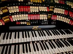 The Avalon Theatre is a movie theater on the first level, with a seating capacity of 1,154.[8] It has a single massive screen.[9] The theater has its original 4-manual, 16 rank pipe organ built by the Page Organ Company of Lima, Ohio.[8]