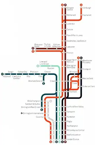 - ^ "West Coast Partnership franchise improvements map". London: Department for Transport. 14 August 2019. Archived from the original on 14 August 2019. Retrieved 14 August 2019.