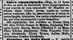 Other notable members included D. Odila Pompílio and D. Maria Albertina Pereira do Rego.[10] Odila served as interim president and was known for her frequent speeches within the association. Maria Albertina, the association's first secretary, delivered the group's inaugural speech. These three women are frequently mentioned in historical documents for their contributions to the association and the abolitionist movement in Recife.[11]