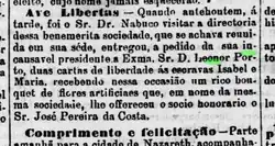 The newspaper Jornal do Recife archive highlights the relationship between the association's members and prominent abolitionists, mentioning a visit by Joaquim Nabuco to the association's board. During the visit, Nabuco presented D. Leonor with two letters of freedom for enslaved individuals, Isabel and Maria.[17]
