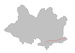 It extends through several neighborhoods heading east, and ends with the intersection with Avenida Luis Giannattasio (which runs through Ciudad de la Costa and Avenida de las Américas (which leads to the Carrasco International Airport and the Interbalnearia and 101 routes), in the Canelones Department.[3]