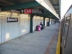 From June 1968[14] to 1987, express service on the elevated portion of the line from Church Avenue to Kings Highway operated in the peak direction (to Manhattan AM; to Brooklyn PM), with some F trains running local and some running express. During this time period, this station was used as a local station.[15][16] Express service ended in 1987, largely due to budget constraints and complaints from passengers at local stations. Express service on the elevated Culver Line was ended due to necessary structural work, but never restored.[15][16][17]