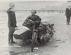 Effie Hotchkiss (January 28, 1889 – April 14, 1966)[2] learned to ride a motorcycle at age 16, after instruction from her brother, and her first motorcycle was a Marsh & Metz. At the age of 18 Effie had begun working on Wall Street.[3] In 1915, she acquired a new Harley-Davidson Model 11-F with a sidecar, the first Harley-Davidson to feature a 3-speed gearbox at a cost of $275, which she paid for from her inheritance from her father.[3] She had an ambition to become the first woman to cross the United States on a motorcycle, and decided to visit the Panama Pacific International Exposition in San Francisco.