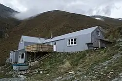 The lodge has two bunk-rooms, and is heated by a combination of coal/wood burners and generated electricity. Fitted with flush toilets, hot showers, full kitchen facilities, dining room/hall, outside deck and outdoor heated spa.[6] The lodge is original, dating back to the earliest days of skiing in New Zealand. It is also used for other activities, such as mountain instruction courses, tramping groups and mountain biking in the summer.[7]