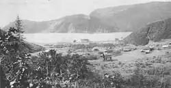 During the Crimean War, Ayan was still an important harbor. The harbor was taken by the British fleet on July 9, 1855. Yet the harbor and the little village had been vacated prior to that by the inhabitants. The coast batteries had been destroyed by the Russians, the guns were buried. Ayan was not destroyed. The objective of the British fleet was to destroy all Russian ships they could find. Apart from a small steam tug there were none. The tug had been pulled on shore and was about to be buried at the time of the occupation. The British troops destroyed the tug through an explosion.[14]
