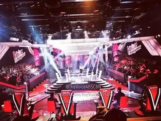 The Blind auditions, which was the main highlight of the show, were filmed last April 2013.[35][54] Geronimo, on an interview made by The Buzz last April 14, 2013, elaborated that the first day of taping for the blind auditions started on April 15, 2013 and ended on April 18, 2013 in Studio 2 – ABS-CBN Broadcasting Center, Quezon City, Metro Manila.[55] In an article published by Philippine Daily Inquirer and written by Lea Salonga, she wrote that a total of one hundred twenty one artists performed during the Blind auditions.[56]