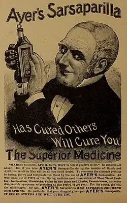 Ayer's Sarsaparilla was a brand of Sarsaparilla invented by James Cook Ayer and sold by his company, Dr. J. C. Ayer and Co.[1] Despite its advertisement as a medicine, its effectiveness is disputed.[2]