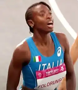 Ayomide Temilade Oluwatoyosi Folorunso (born 17 October 1996) is a Nigerian-Italian athlete specialising in the 400 metres hurdles.[3] She competed in the 4 × 400 metres relay at the 2015 World Championships in Beijing.