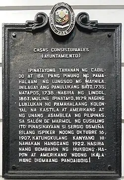 - ^ Magno, Alexander T. (July 16, 2015). "Ayuntamiento de Manila: On its 4th incarnation since 1571". CNN Philippines. Archived from the original on March 2, 2017. Retrieved September 9, 2016.