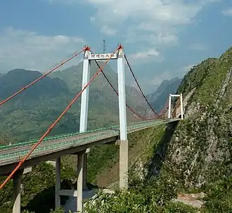 Azhihe River Bridge is a 247-metre-high (810 ft) suspension bridge in the Liuzhi Special District, Guizhou, China. As of 2019, it is among the fifty highest bridges in the world.[1] The bridge is located on the Shuihuang highway between Guanling and Liupanshui.[2]