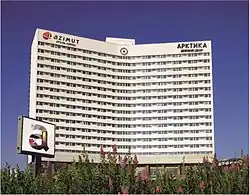 The Azimut Hotel Murmansk is a high-rise hotel in the center of Murmansk, Russia. It opened in 1984, as the Hotel Arktika (Russian: Арктика) (Hotel Arctic) and was renamed the Azimut Hotel Murmansk in 2014, following major renovations. It is the tallest building in Murmansk[2] and the tallest building located north of the Arctic Circle.[3][4][1]