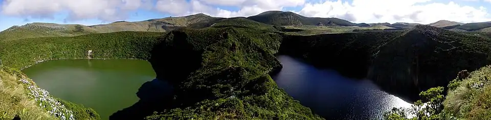 Panoramic view of Lagoa Funda and Lagoa Rasa in their respective calderas on the island of Flores