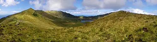 Panoramic view of the Caldeirão crater on the small island of Corvo