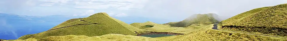 Characteristic of the Azorean geological history is a range of diverse features that includes (but is not limited to) volcanoes, calderas, lakes, lava fields, fumaroles, hot springs and thermal waters, volcanic caves, fajãs, fault scarps and marine fossil deposits.[2] Beyond this heritage, there are other values of reference in the archipelago, such as its rich biodiversity, architecture, culture and ethnography.[2][4]