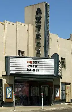 The Azteca Theater (Teatro Azteca) is a historic Art Deco theater in the Chinatown district of Fresno, California, built by Gustavo Acosta in 1948. The theater was the first Spanish language cinema in the San Joaquin Valley, serving a growing population of Mexican-Americans in California's Central Valley. It was listed on the National Register of Historic Places in 2017.[1]